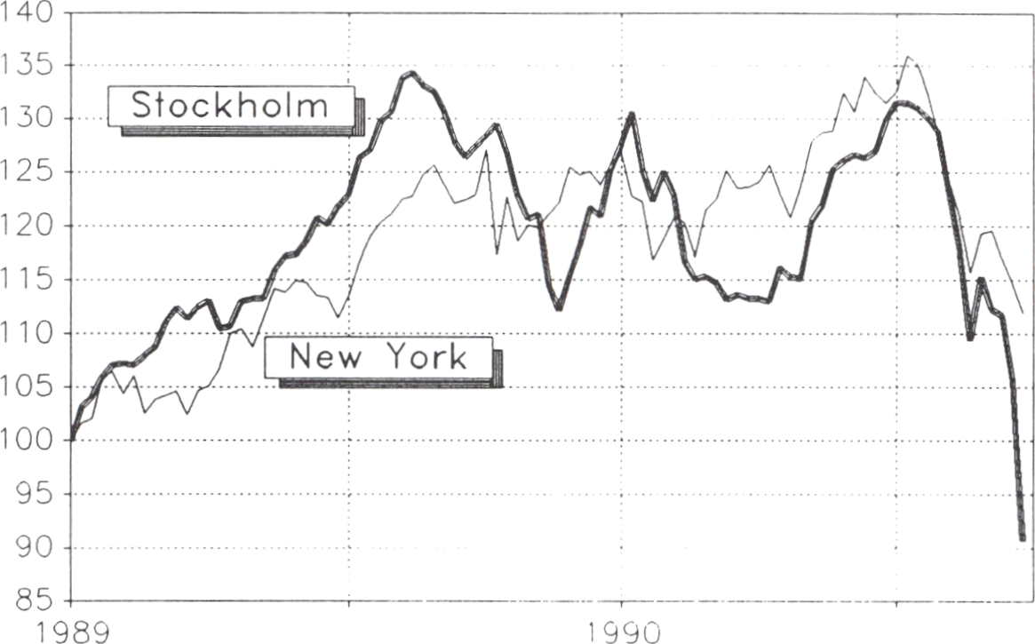 6 Börsutvecklingen i Stockholm och New York 1989-1990 24