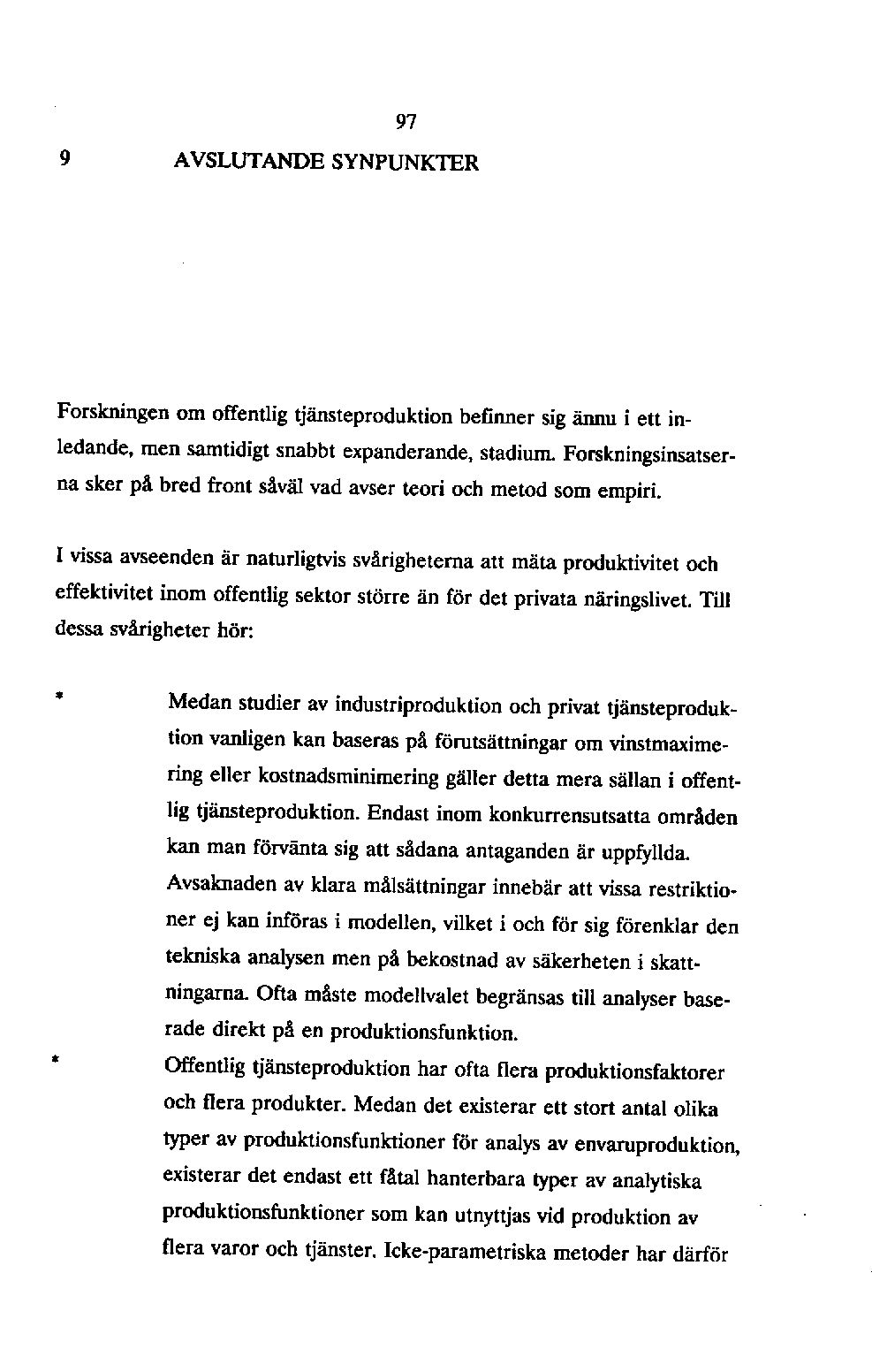 Forskningenom offentlig tjänsteproduktionbefinnersig ännu i ett inledande,men samtidigtsnabbtexpanderande,stadium.Forskningsinsatserna skerpå bred front såvälvad avserteori ochmetod somempiri.