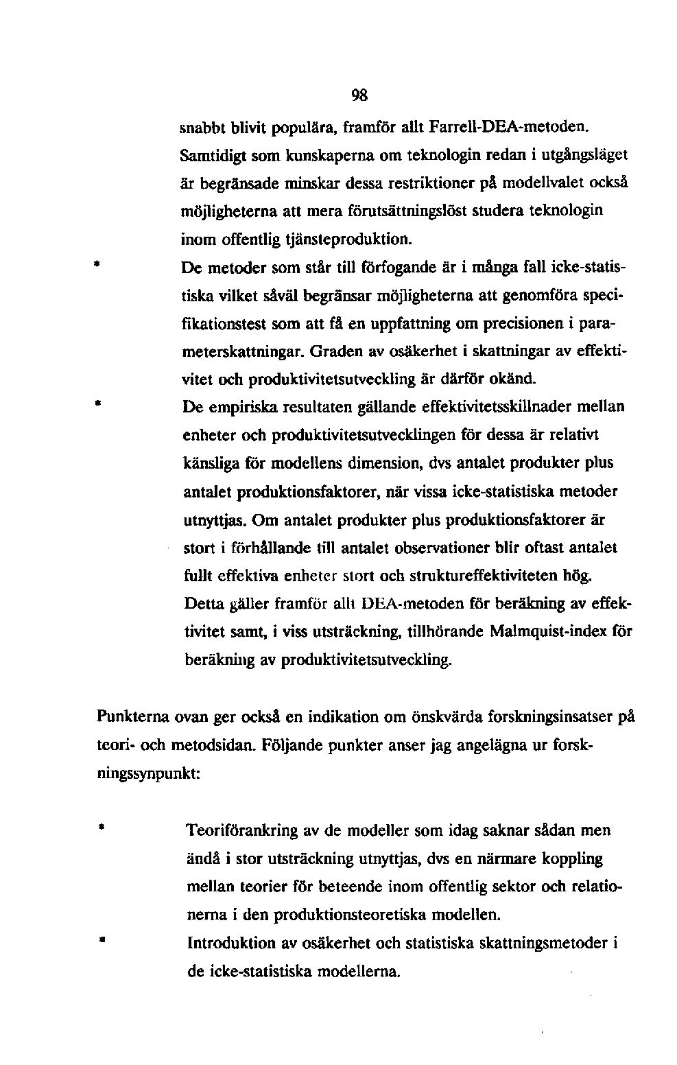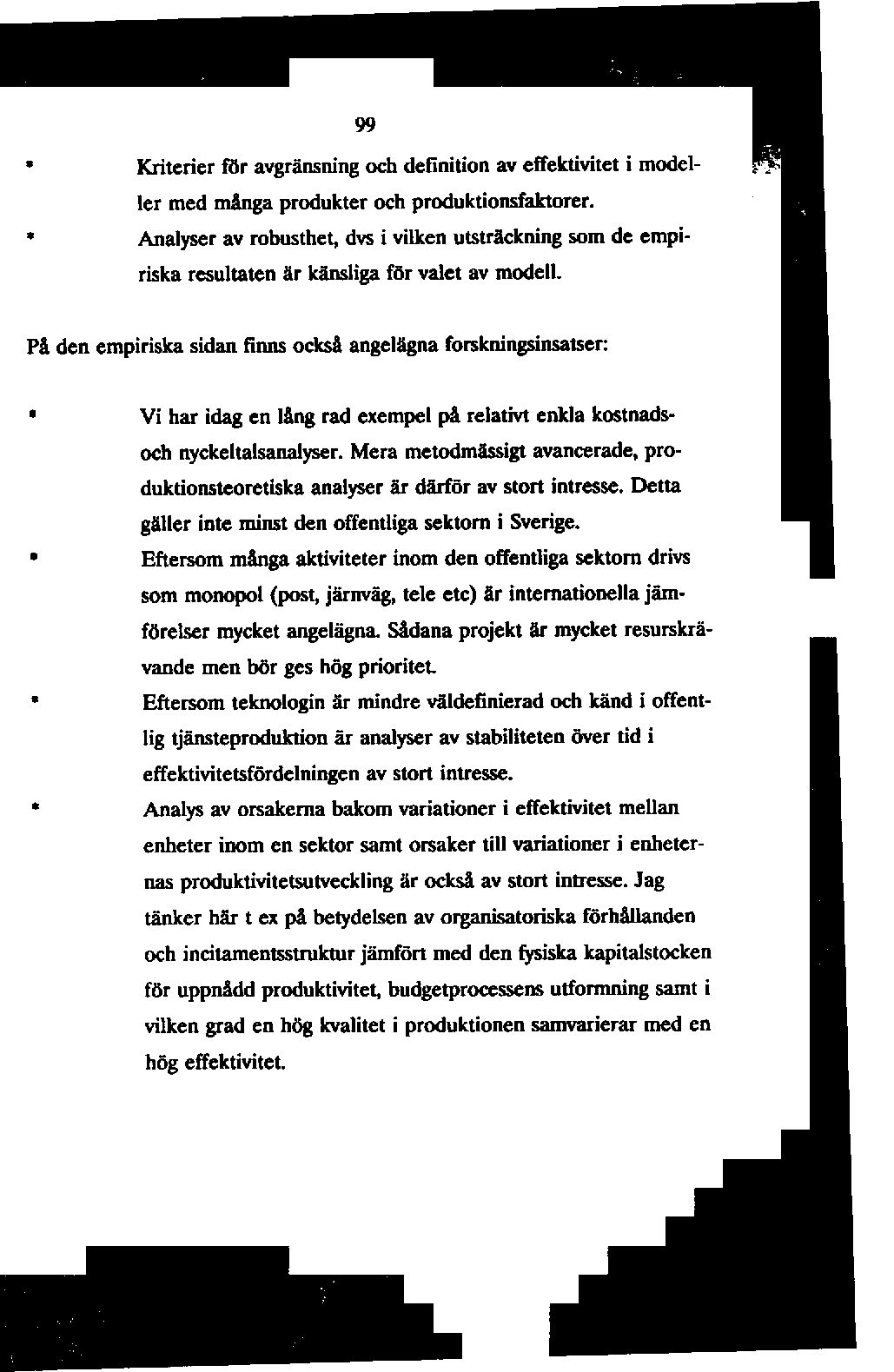 Kriterier för avgränsningoch definition av effektivitet i modeller med många produkter ochproduktionsfaktorer. Analyserav robusthet,dvs i vilken utsträckningsomde empiriska resultatenär känsligaför valet avmodell.