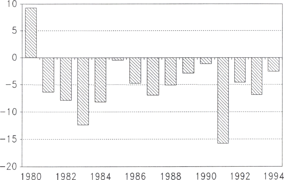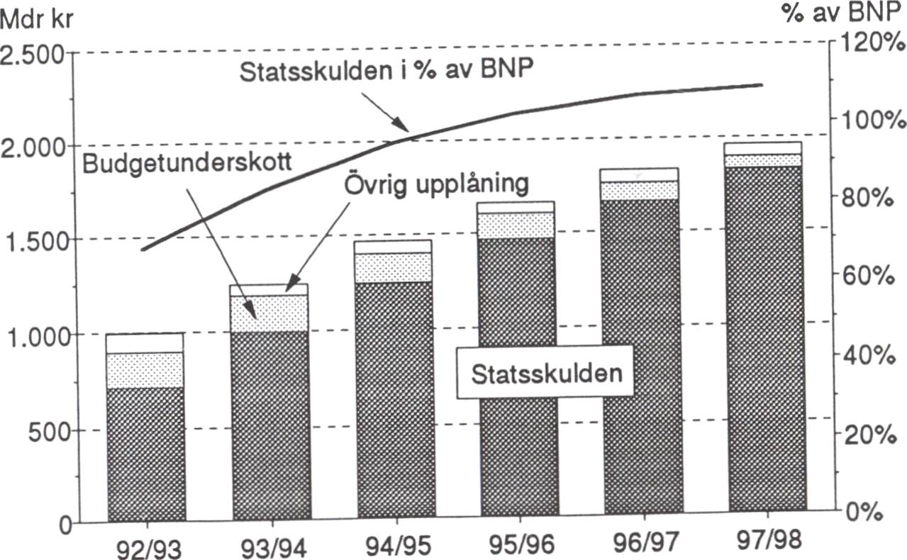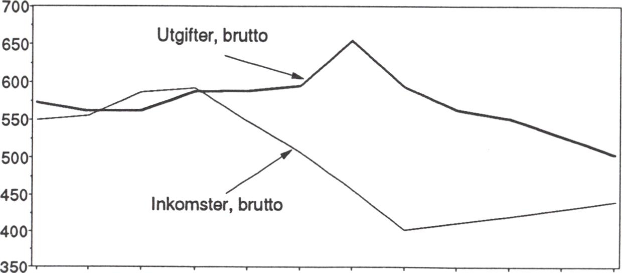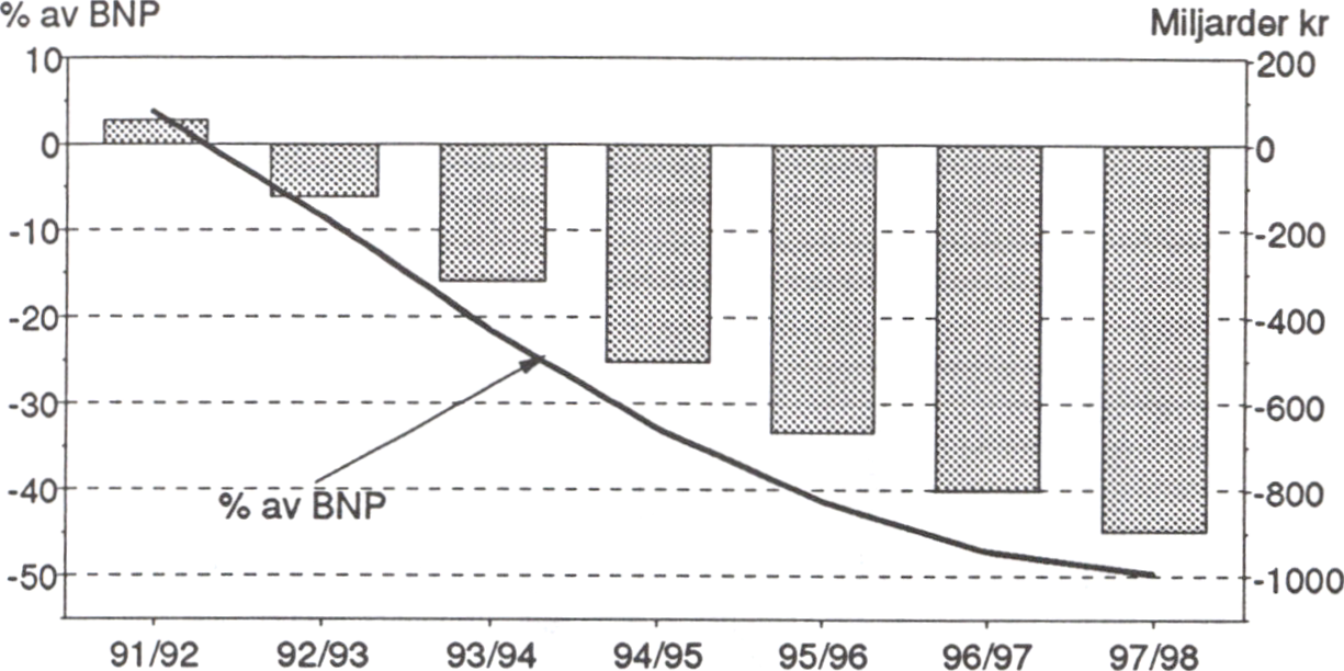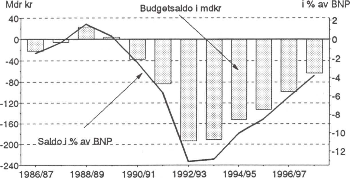 För budgetåret 1993/94 beräknades i budgetpropositionen ett underskott