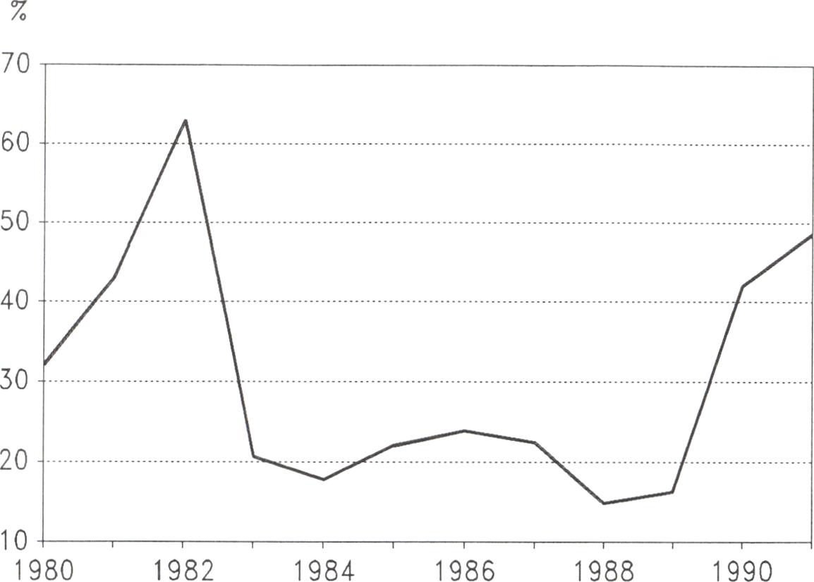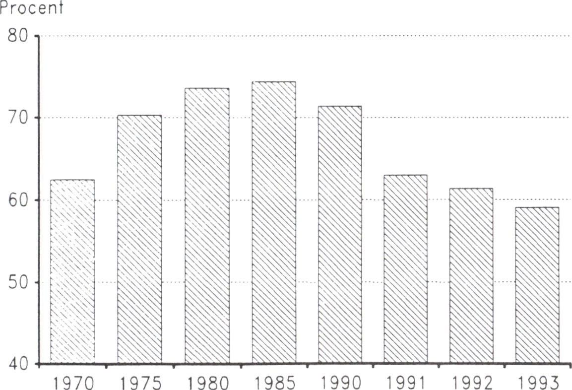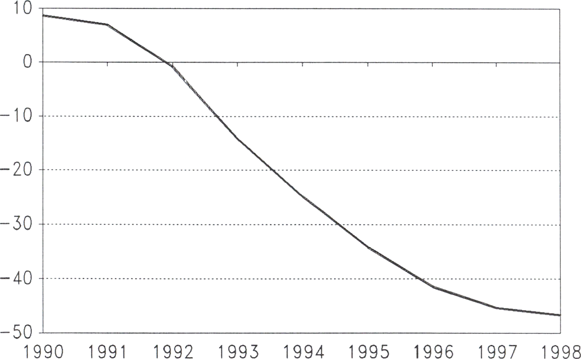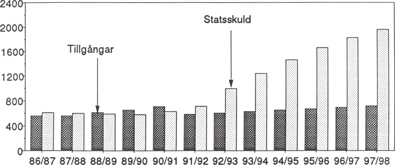 För budgetåret 1993/94 beräknades i budgetpropositionen ett underskott