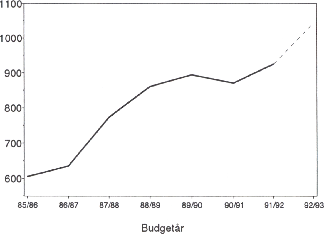 Sammanfattningsvis beräknar jag alltså att anslaget för 1993/94 bör