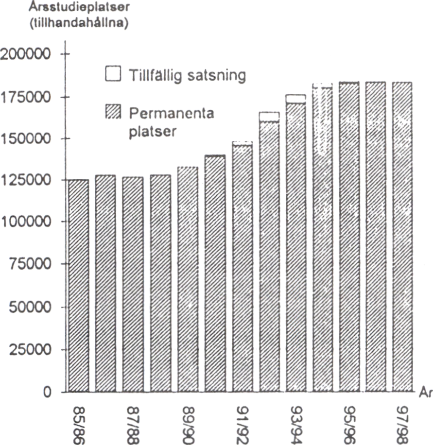 Utbildningspolitikens mål är att under 1990-talet föra upp universite-