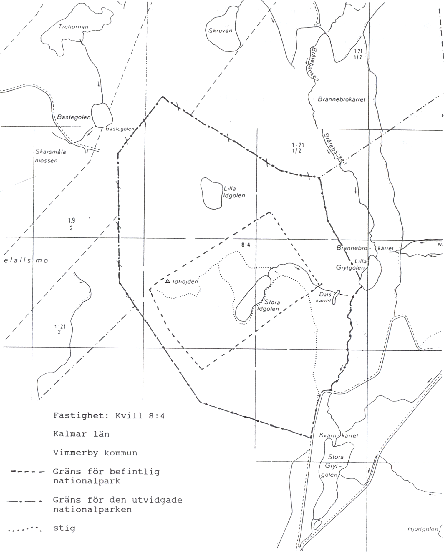 gränsad areal - bibehålls som nationalpark.