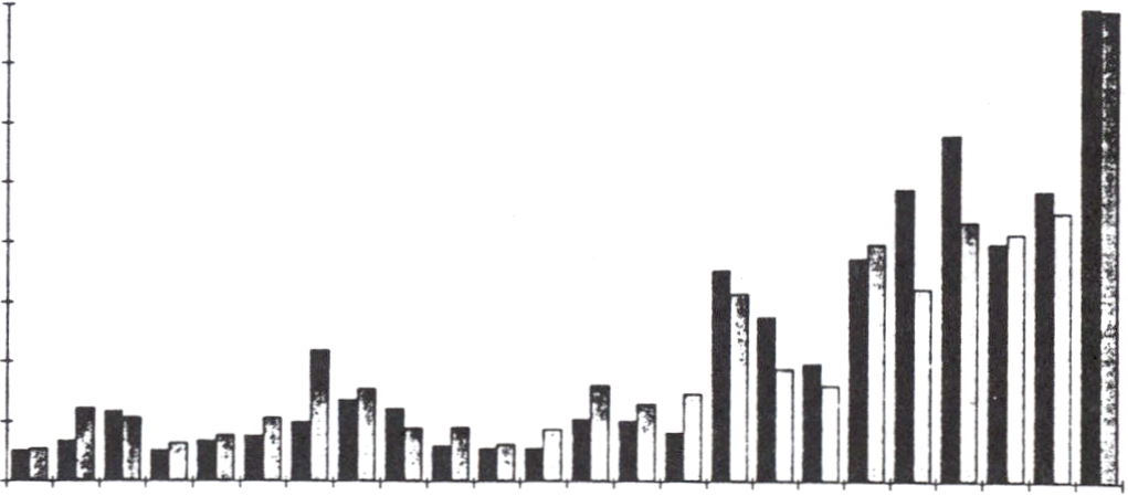 successivt att öka från år 1996 för att trappas ned i slutet av perioden. De