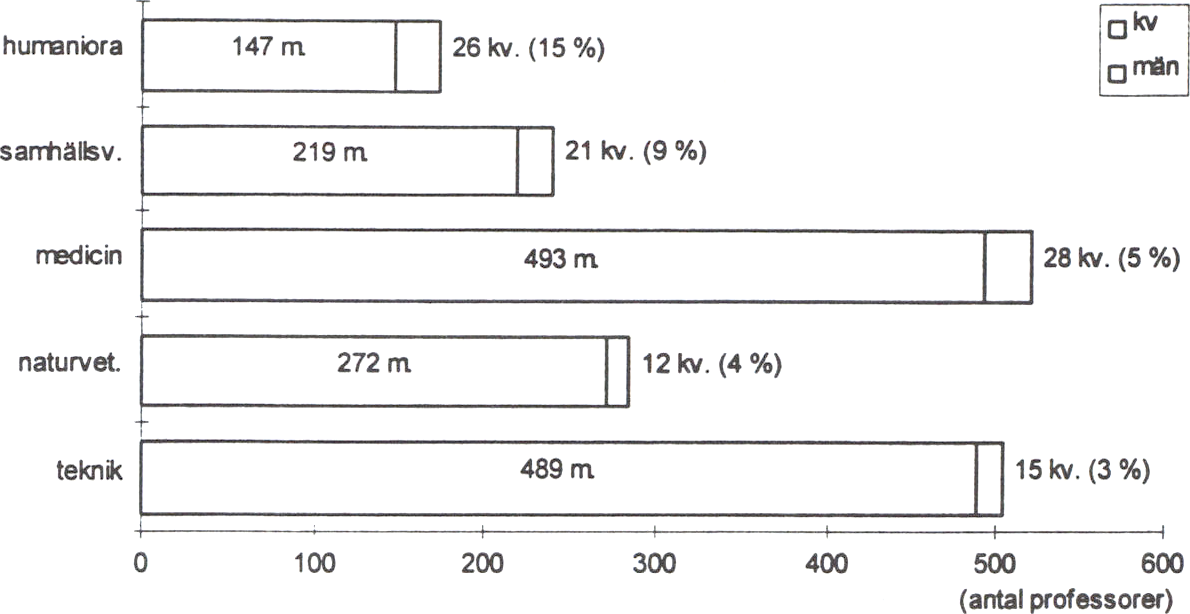 Tabell 6. Könsfördelningen bland professorer, lektorer och Prop. 1994/95:164