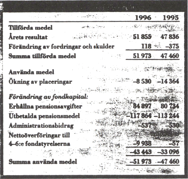 miljarder kronor. Det redovisade resultatet för 1996 visar ett överskott på 47,1 miljoner