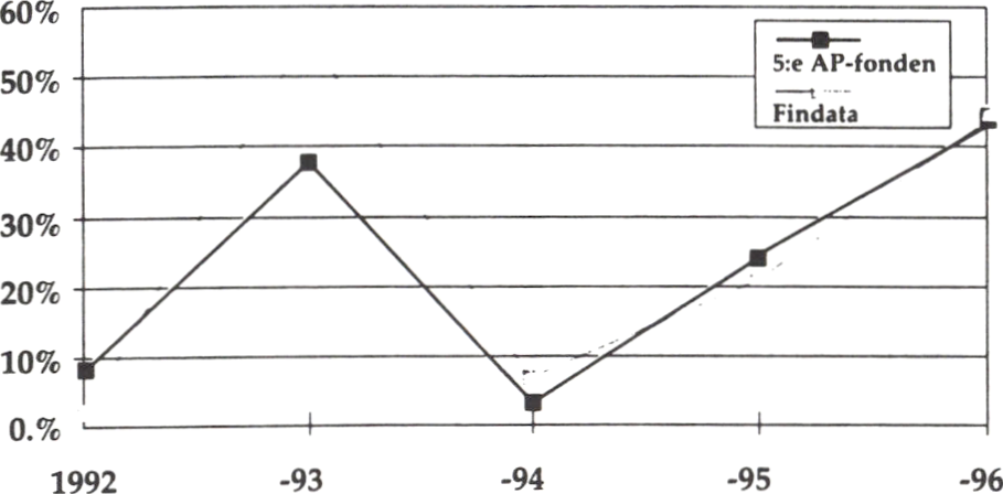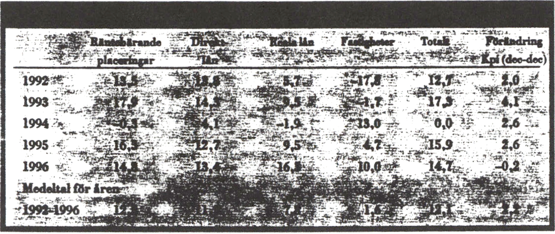 0,2 % under år 1996 vilket innebär att den reala avkastningen på fondkapita-