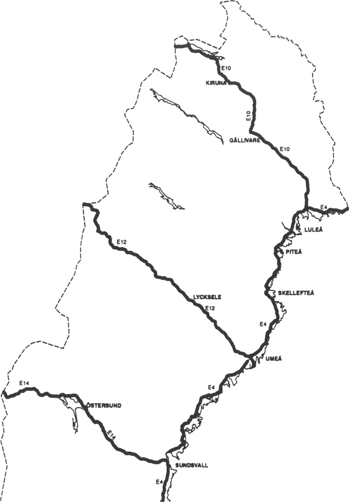 och på alla motorvägar, väg E 10, E 12 och E 14 samt vissa sträckningar
