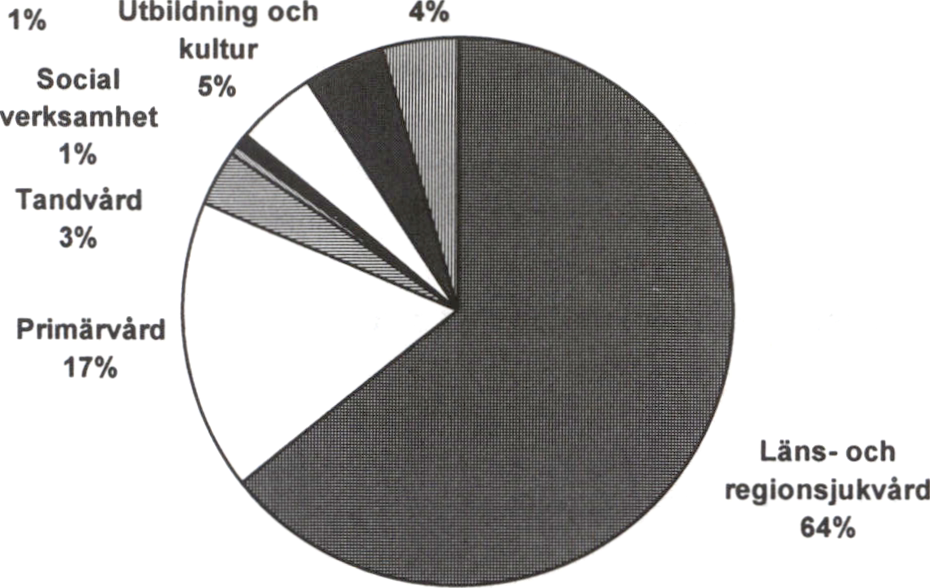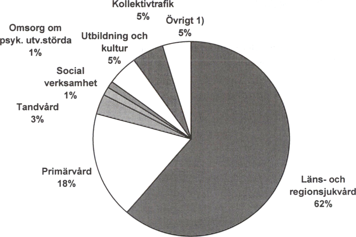 för 26 procent, landstingen för sju procent medan staten svarade för 67
