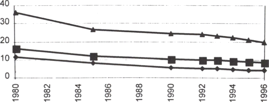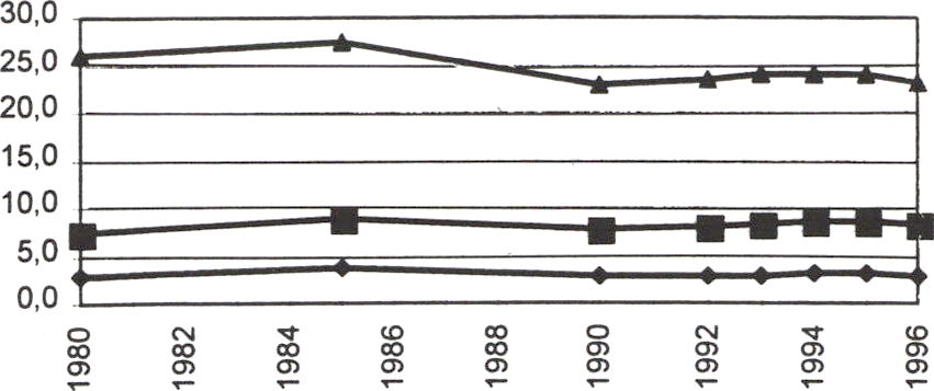 bröts den uppåtgående trenden i början av 1980-talet. Utvecklingen under