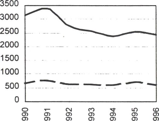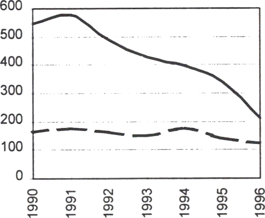oavsett hur den har finansierats, minskade mellan åren 1991 och 1997.