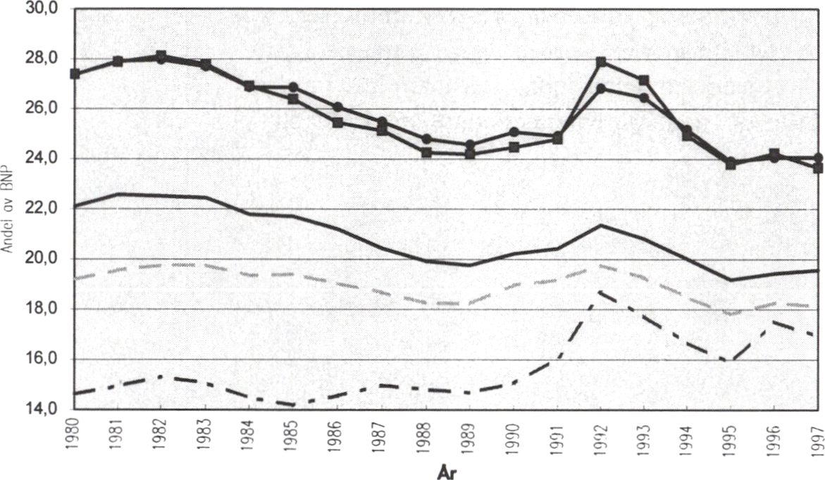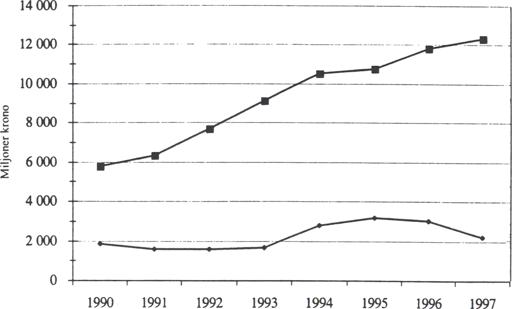 Källa: Statistiska centralbyrån, Nationalräkenskaperna. Preliminärt utfall år 1997.
