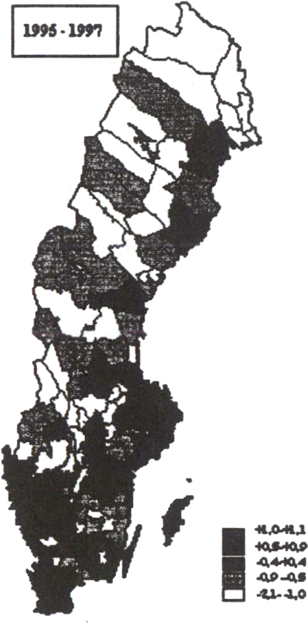 främst i de s.k. skogslänen. En orsak till detta är den kraftiga ekonomiska