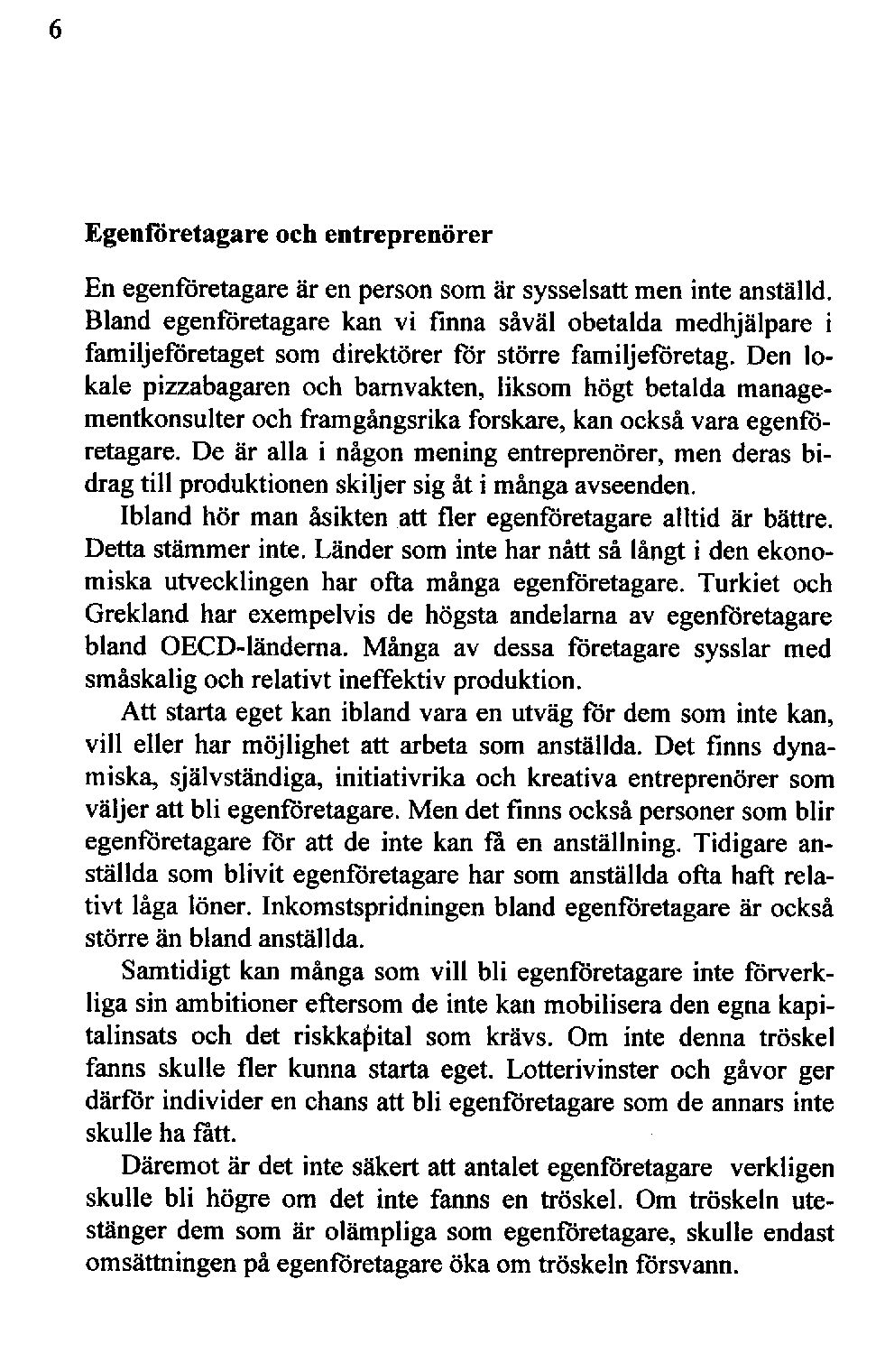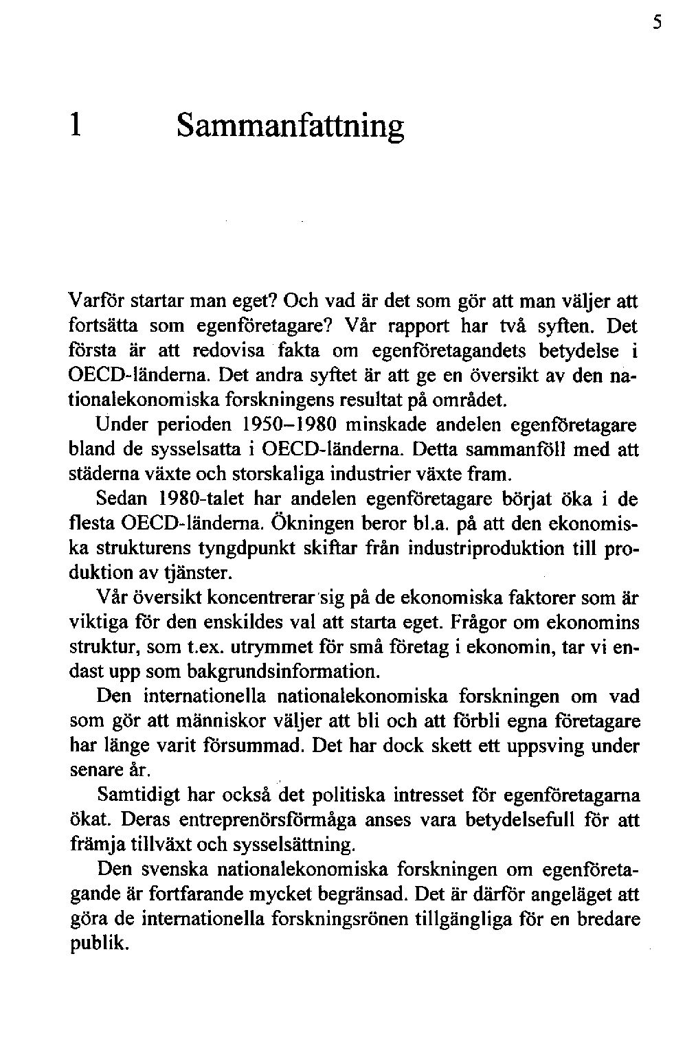 Den svenskanationalekonomiskaforskningenom egenföretagandeär fortfarandemycketbegränsad.Det är därför angelägetatt göra de internationellaforskningsrönentillgängliga för enbredare publik.