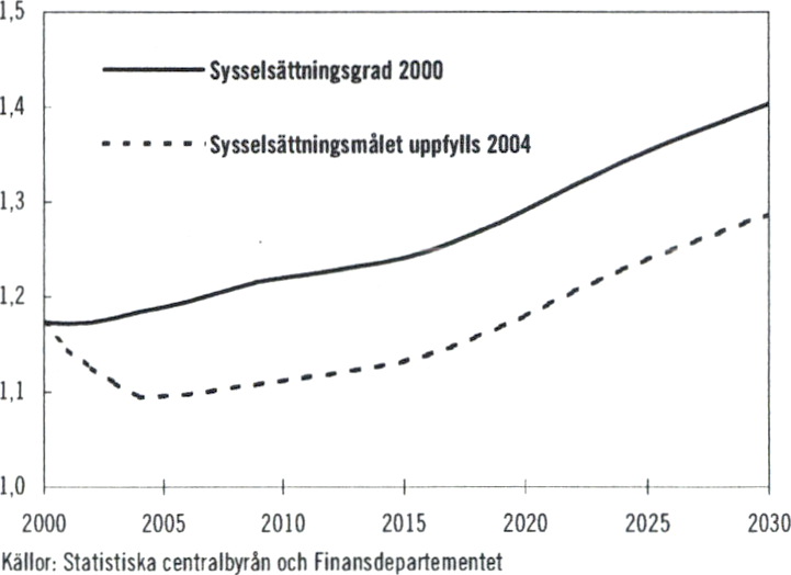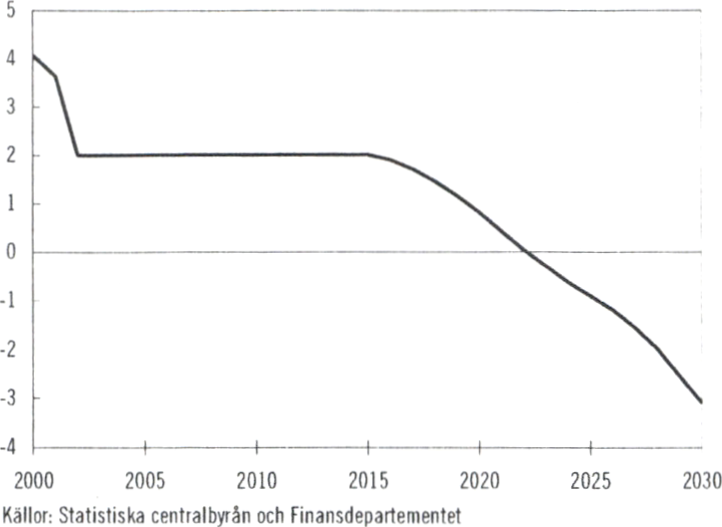 i offentlig sektor på 2,0 procent av BNP 2004. Regeringen aviserar inom ramen för budgetmålen en