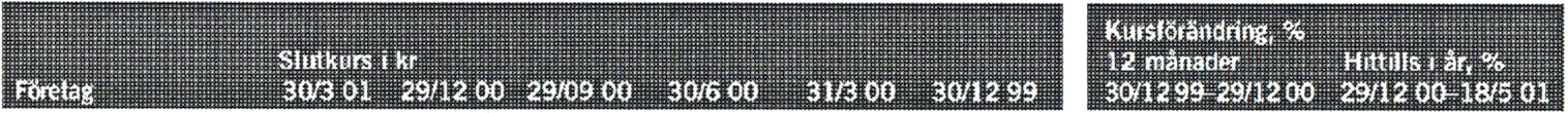 2000 fram till och med mars 2001. I redovisningen ingår dels aktiebolag