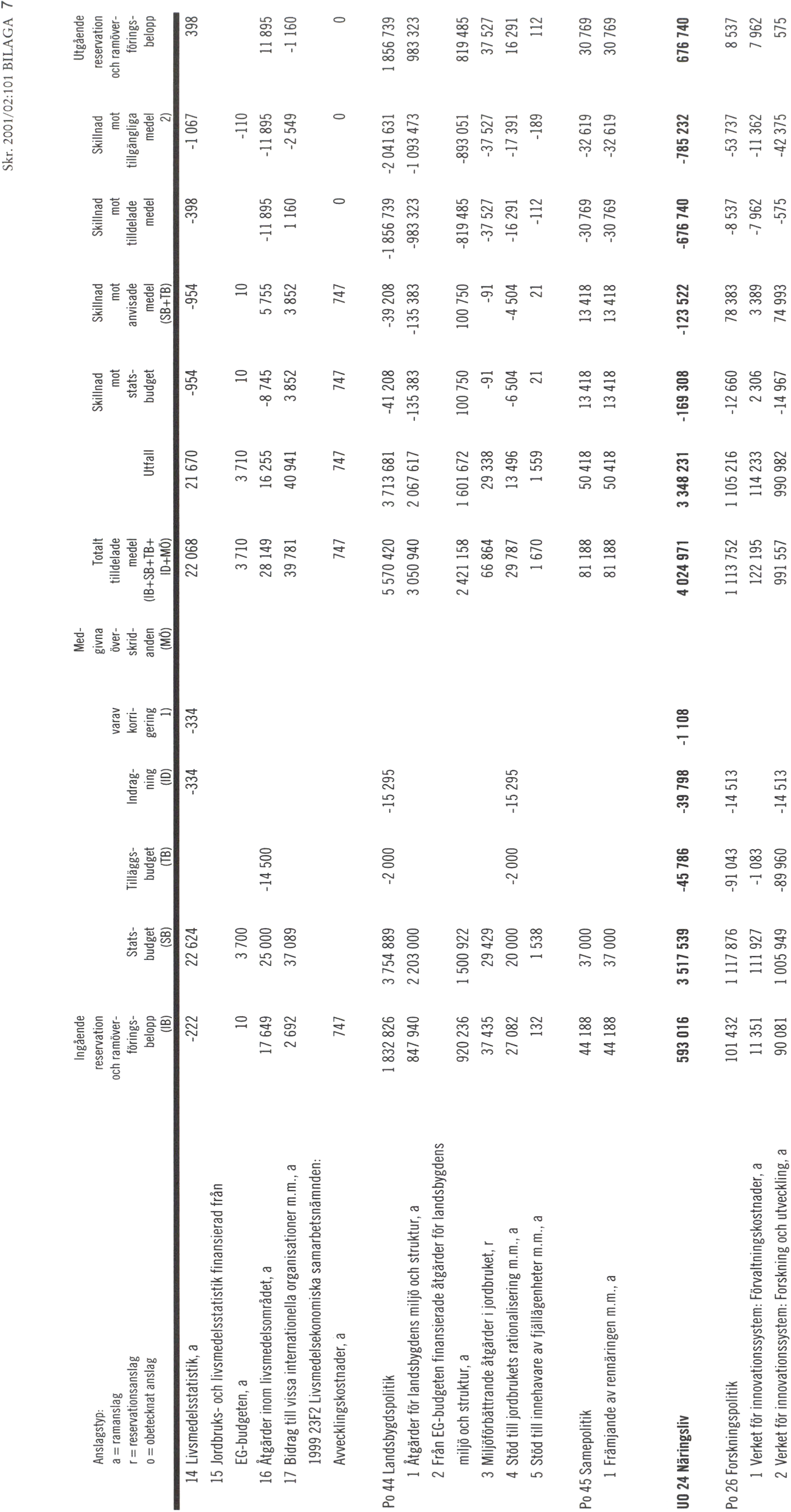 Enligt budgetprop. 2001/02:1 |