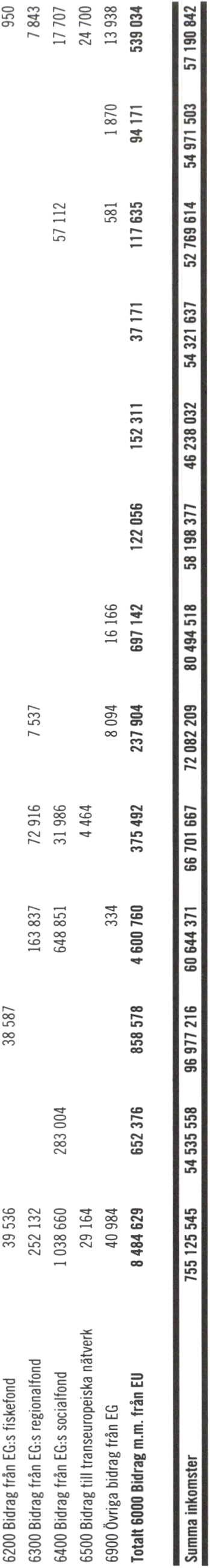 6100 Bidrag från EG:S jordbruksfond 7 084 152 369 372 819 991 3 787 737 266 127 222 273 680 976 122 056 152 311 37 171 59 942 92 301 473 896