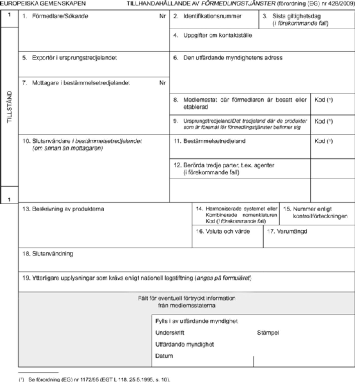 dels att i 3 och 15 §§ ordet ”1334/2000” ska bytas ut mot ”428/2009”,