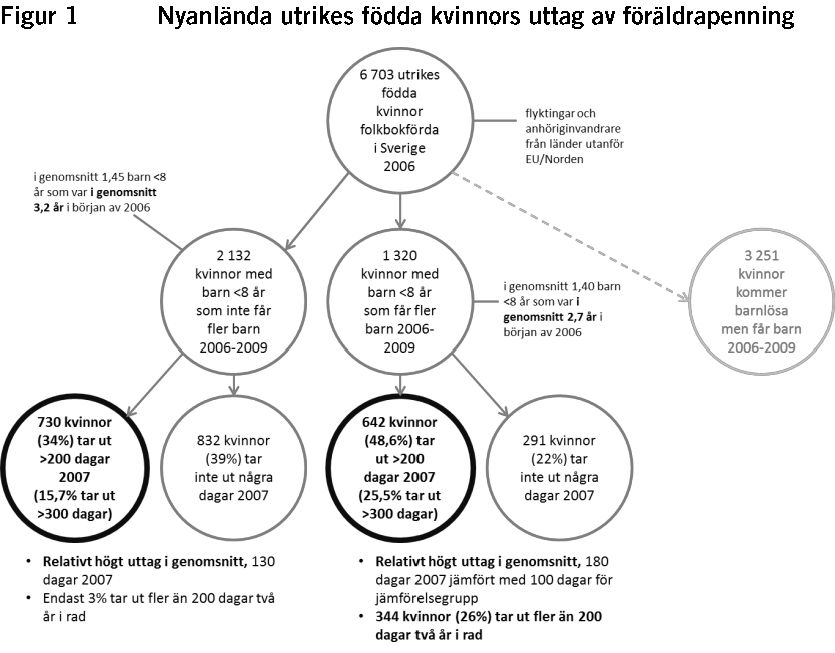 I denna promemoria föreslÄs att förÀldrapenning efter barnets fyraÄrsdag ska kunna lÀmnas med högst 96 dagar. Förslaget Àr en del av de ÄtgÀrder som planeras för att förstÀrka incitamenten för nyanlÀnda utrikes födda kvinnor att etablera sig pÄ arbetsmarknaden. FörÀldrapenningens nuvarande konstruktion medför att förÀldrar som kommer till Sverige med barn som inte har fyllt Ätta Är kan fÄ förÀldrapenning för 480 dagar Àven om barnet har fyllt t.ex. sex Är redan vid ankomsten hit. Ett lÄngvarigt uttag av förÀldrapenning nÀr barnet Àr Àldre kan dock motverka ambitionen att nyanlÀnda förÀldrar bör delta i arbetsförberedande insatser som kan föra dem nÀrmare arbetsmarknaden. Genom förslaget betonas ocksÄ att huvuddelen av förÀldrapenningen bör anvÀndas nÀr barnet Àr litet och behovet av omvÄrdnad frÄn förÀldrarna Àr som störst.