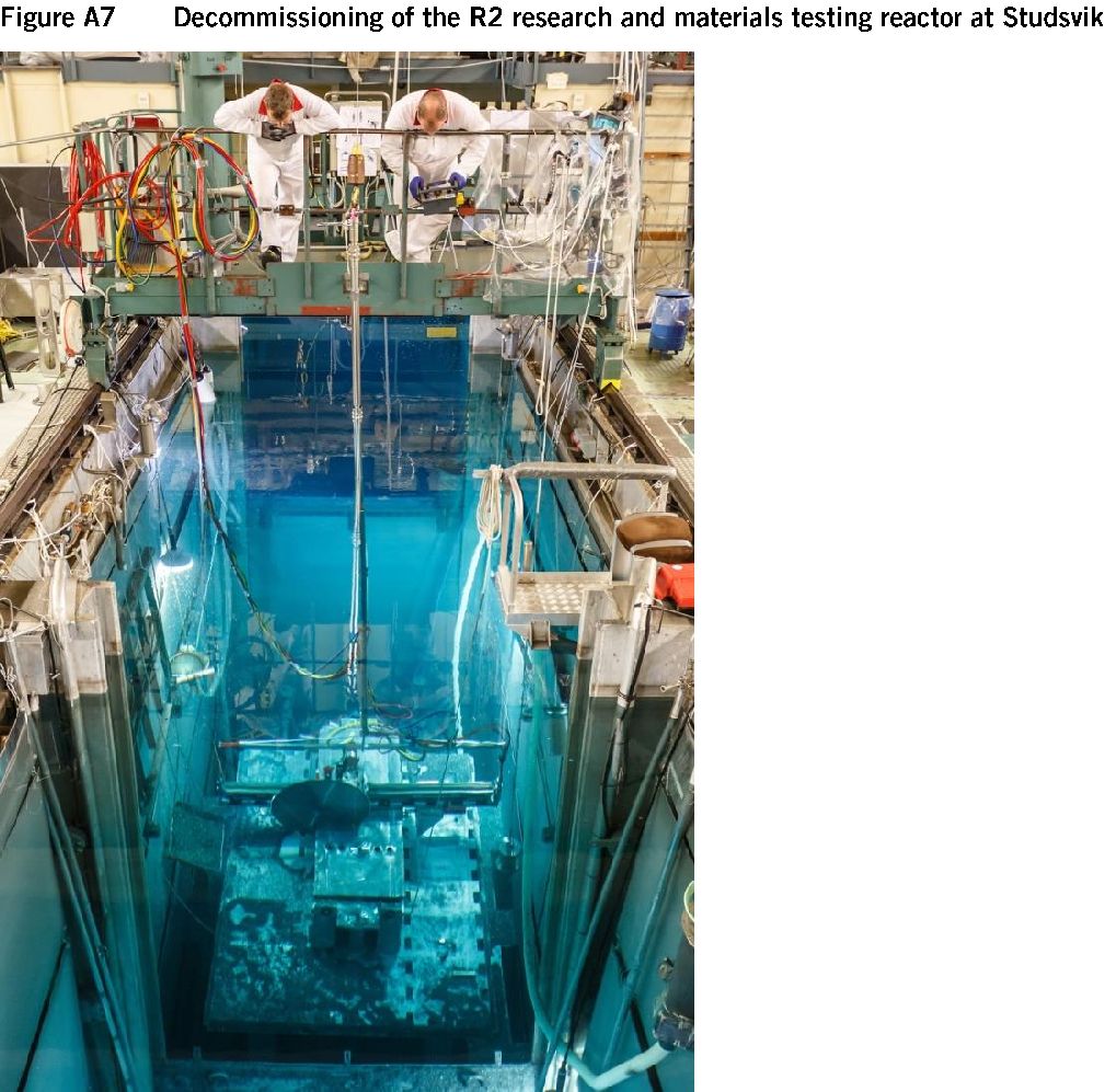 Lower right: Dismantling and decommissioning of the research and materials testing reactor R2 at the Studsvik facilities.
