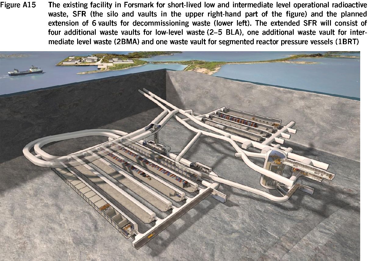 In 2014, SSM received a licence application for an extension of the final repository for short- lived low and intermediate level waste at Forsmark (SFR) so that it can also accommodate decommissioning waste. SSM’s review is ongoing and SKB has submitted complementary information upon request by SSM. SKB has also withdrawn the part of the licence application related to interim storage of