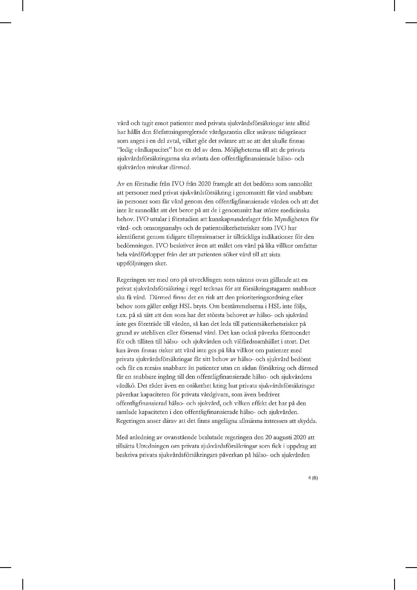 Dir. 2020:83, Begränsning av privata sjukvårdsförsäkringars påverkan på offentligt finansierad hälso- och sjukvård.