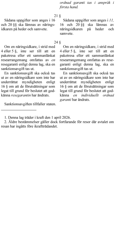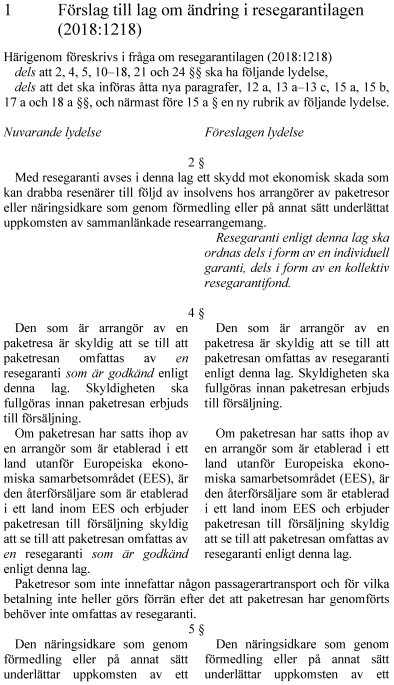 1. lag om ändring i resegarantilagen (2018:1218),