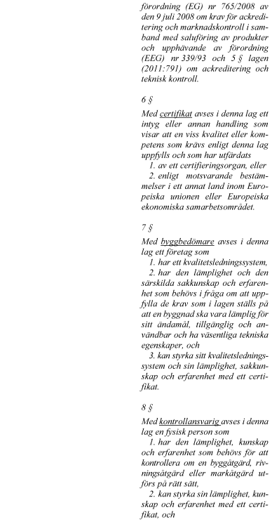 Under 2022 trädde lagstiftningen om certifierat byggprojekteringsföretag i kraft (prop. 2021/22:212, bet. 2021/22:CU35, rskr. 2021/22:449). Ett certifierat byggprojekteringsföretag är ett företag som har ett kvalitetsledningssystem samt särskild sakkunskap och erfarenhet i fråga om att bedöma vissa krav vid nybyggnad av sådana bostadshus som framgår av föreskrifter som har utfärdats med stöd av plan- och bygglagen (2010:900), härefter PBL. Syftet med lagändringarna var att öka förutsägbarheten och effektiviteten vid nybyggnad genom att ge byggherren möjlighet att ta ett större ansvar för att den tidiga kontrollen av byggreglerna uppfylls, under förutsättning att projekteringen utförs av en aktör som certifierats för uppgiften.