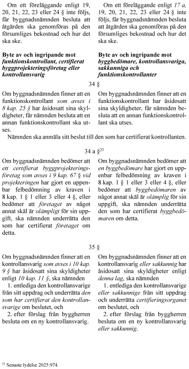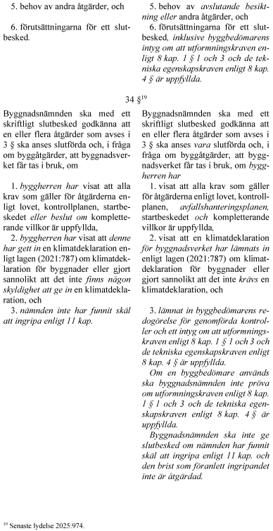 Mot denna bakgrund står utskottet bakom regeringens lagförslag i de delar som handlar om byggbedömare. Utskottet anser att riksdagen, av de skäl som anförs i propositionen, bör anta lagförslaget i dessa delar. Därmed avstyrker utskottet motion 2025/26:3975 (S) yrkandena 1 och 2.
