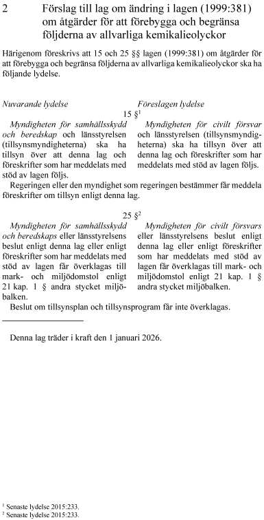 2. lag om ändring i lagen (1999:381) om åtgärder för att förebygga och begränsa följderna av allvarliga kemikalieolyckor,