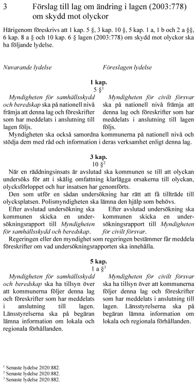 3. lag om ändring i lagen (2003:778) om skydd mot olyckor,