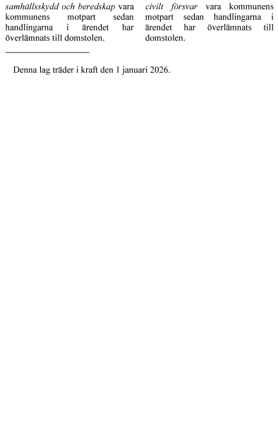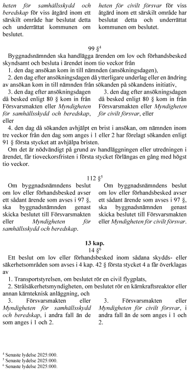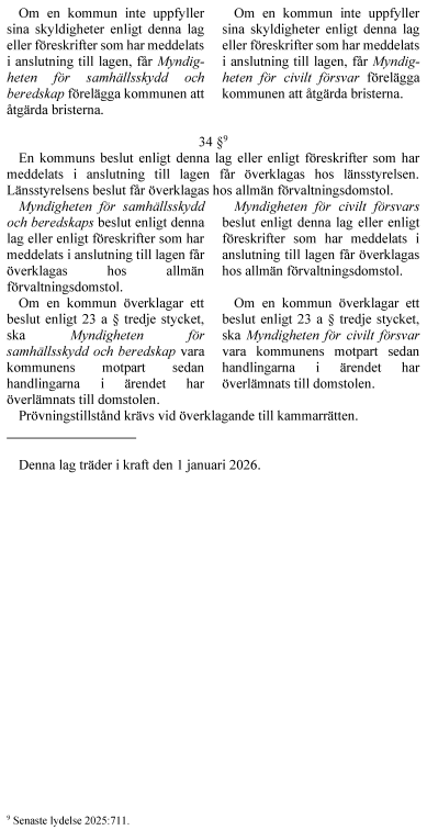 Utskottet föreslår att riksdagen antar regeringens förslag till ändringar i miljöbalken, lagen om åtgärder för att förebygga och begränsa följderna av allvarliga kemikalieolyckor, lagen om skydd mot olyckor, offentlighets- och sekretesslagen, plan- och bygglagen, lagen om brandfarliga och explosiva varor, tullagen, lagen om åtgärder för utbyggnad av bredbandsnät och lagen om Transportstyrelsens olycksdatabas. Lagändringarna, som är en följd av att Myndigheten för samhällsskydd och beredskap får ett nytt namn, föreslås träda i kraft den 1 januari 2026.