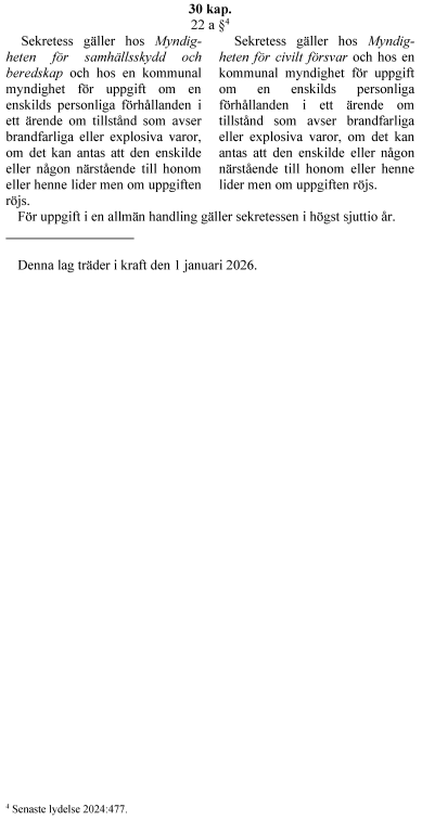 4. lag om ändring i offentlighets- och sekretesslagen (2009:400),