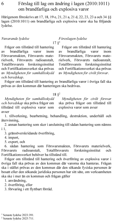 6. lag om ändring i lagen (2010:1011) om brandfarliga och explosiva varor,