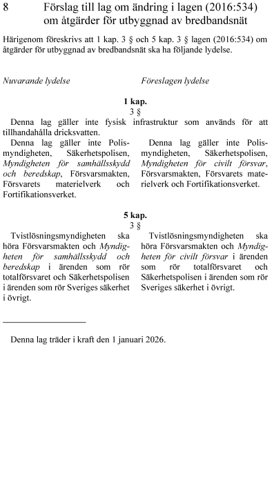 8. Riksdagen antar regeringens förslag till lag om ändring i lagen (2016:534) om åtgärder för utbyggnad av bredbandsnät.