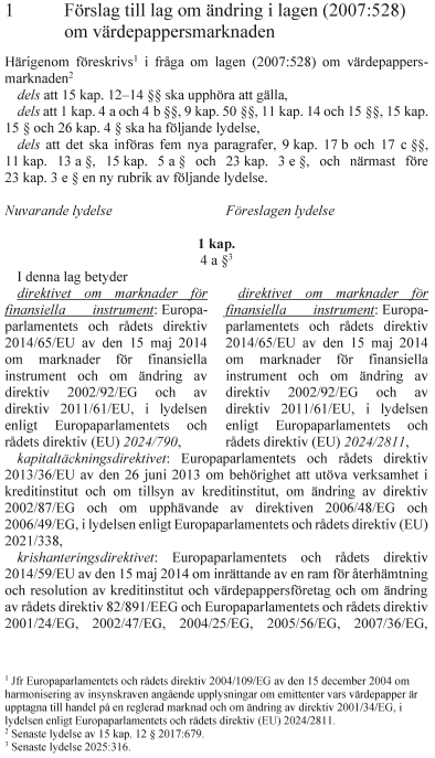 1. lag om ändring i lagen (2007:528) om värdepappersmarknaden,