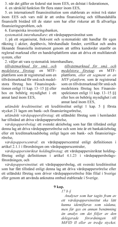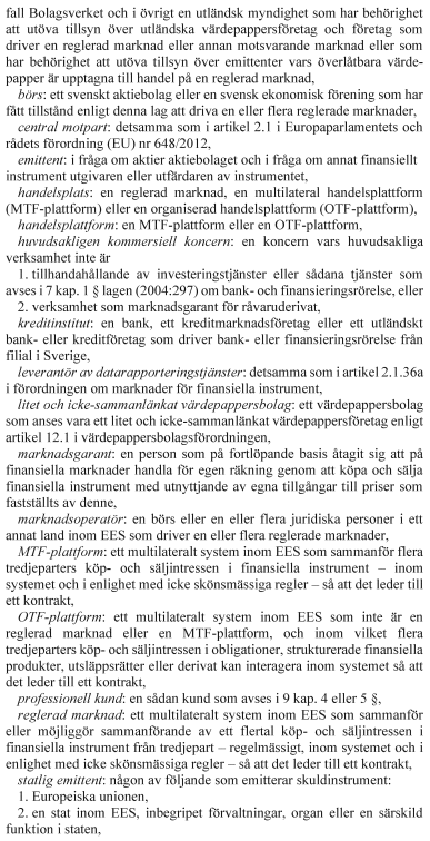 Hänvisningar till EU:s marknadsmissbruksförordning och EU:s prospektförordning ska vara dynamiska, dvs. avse förordningarna i den vid varje tidpunkt gällande lydelsen. Hänvisningar till EU:s direktiv om marknader för finansiella instrument ska vara statiska och avse direktivet i lydelsen enligt ändringsdirektivet.