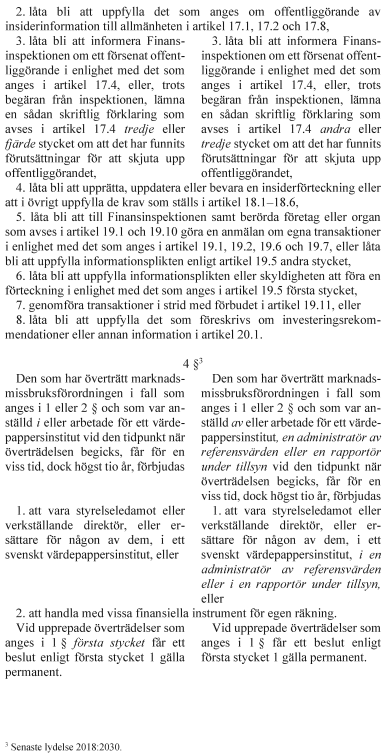 Ändringar i marknadsmissbruksförordningen