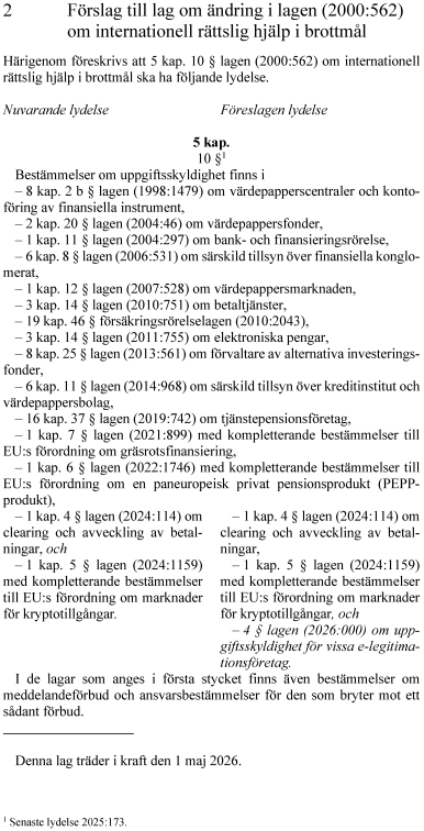 2. lag om ändring i lagen (2000:562) om internationell rättslig hjälp i brottmål,