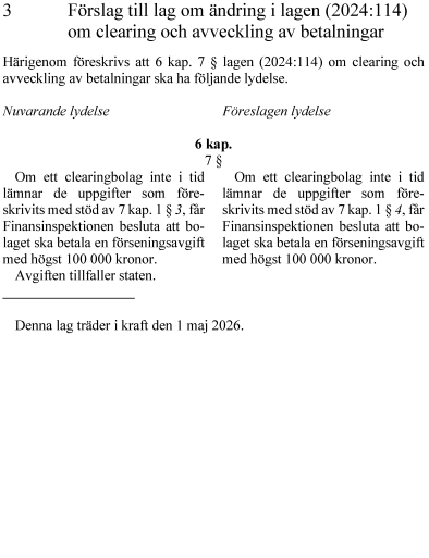 3. lag om ändring i lagen (2024:114) om clearing och avveckling av betalningar,