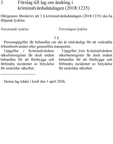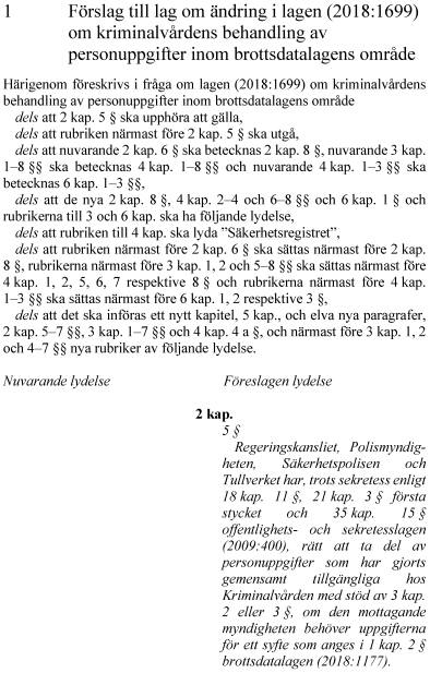 En modern lagstiftning för Kriminalvårdens personuppgiftsbehandling |