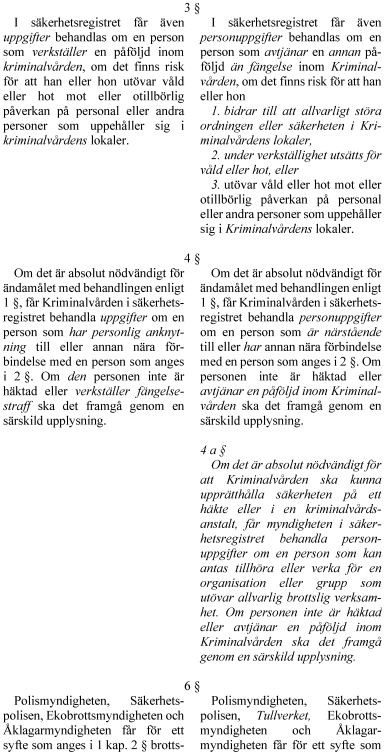 Lagändringarna innebär att Kriminalvården får större möjligheter att behandla de personuppgifter som behövs för att myndigheten ska kunna verkställa påföljder på ett effektivt och säkert sätt. Kriminalvården får även utökade möjligheter att använda ansiktsigenkänning. Samtidigt stärks skyddet för den personliga integriteten.
