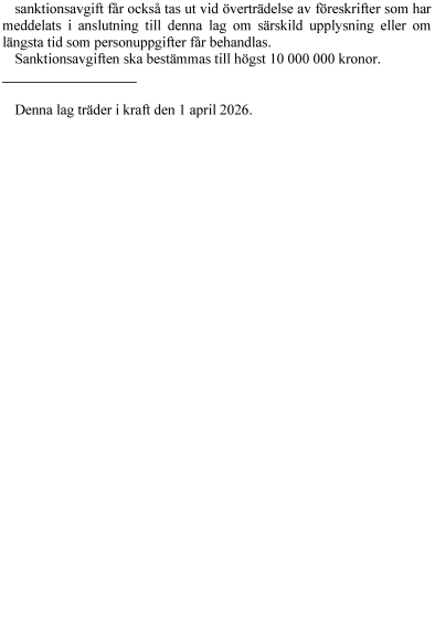 1. lag om ändring i lagen (2018:1699) om kriminalvårdens behandling av personuppgifter inom brottsdatalagens område med den ändringen att ordet ”En” ska införas i 6 kap. 1 § andra stycket före ”sanktionsavgift”,