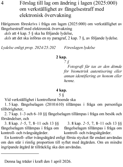 4. lag om ändring i lagen (2025:000) om verkställighet av fängelsestraff med elektronisk övervakning.