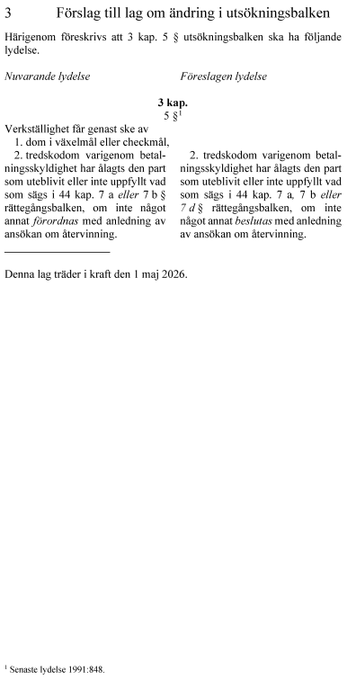 3. lag om ändring i utsökningsbalken.