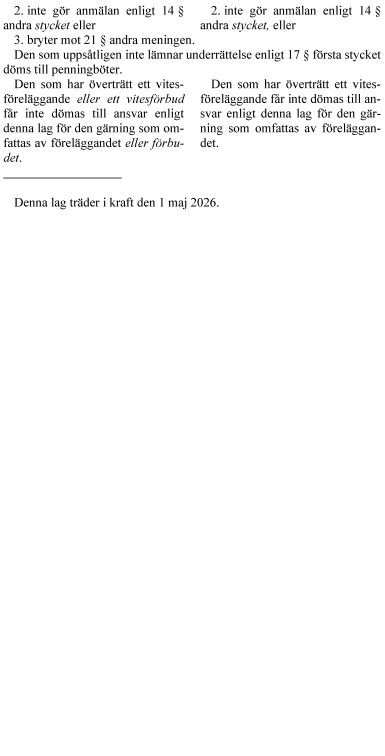 Lagändringarna föreslås träda i kraft den 1 maj 2026.