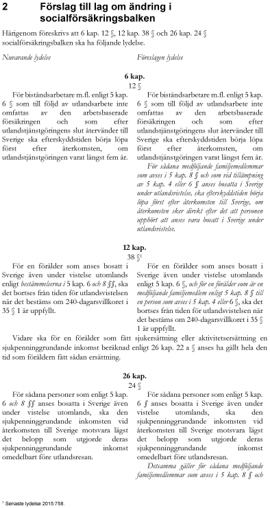 2. Riksdagen antar förslaget till lag om ändring i socialförsäkringsbalken (avsnitt 2.2 och 3.10).