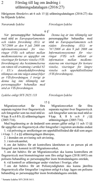 2. lag om ändring i utlänningsdatalagen (2016:27),